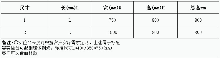 鋼木實驗臺立柱:采用40×60mm,厚壁為1.5或2.0mm方管焊接制作而成,表面經酸洗、磷化作防銹處理,再靜電粉沫噴涂EPOXY防護層做耐酸堿防腐蝕表面處理,再進行環氧樹脂塑粉高溫固化處理,整體穩重合理,防酸堿抗腐蝕性能極佳,框架靜態承重﹥300公斤;